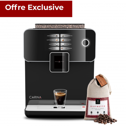 Machine à café automatique modèle CARINA avec écran tactile, technologie AromaPlus, 19 bars + 1 kg Café en grain Grand Cru BIO