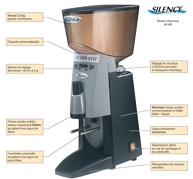 Ce moulin silencieux trouve sa place sur les comptoirs, en complément de la traditionnelle machine Espresso 1,2 ou 3 groupes.