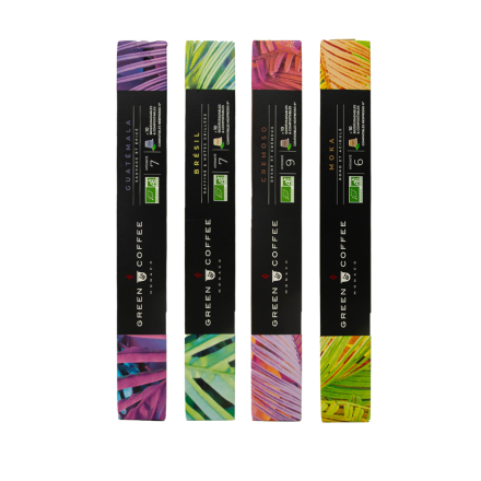 Vous êtes indécis quant au produit à choisir ! Notre pack dégustation zéro dechet Green Coffee Monaco vous permet de goûter les différents types, tous biologiques, tous de qualité, mais avec des caractéristiques différentes ! Chaque gamme révélera des notes aromatiques propres à ses origines et à sa torréfaction : des saveurs variées, fleuries, gourmandes et intenses pour tous les palais. À l'intérieur de ce paquet, vous trouverez les cafés suivants : Guatemala, Bresil, Cremoso, Moka.